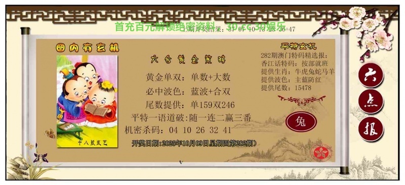 283期:平特连肖『兔鸡猴蛇羊』开:2肖 |