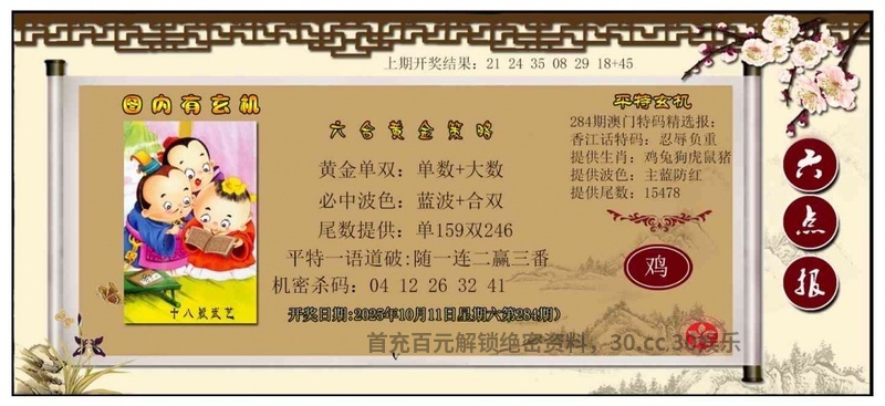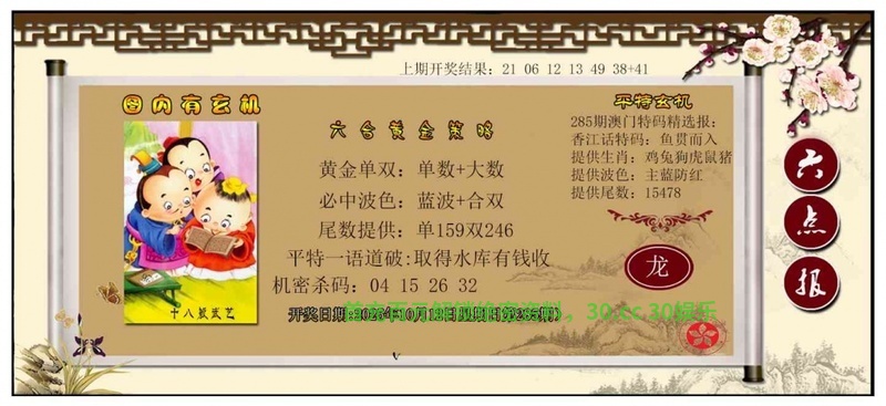 285期:平特连肖『鸡龙马蛇羊』开:2肖 |