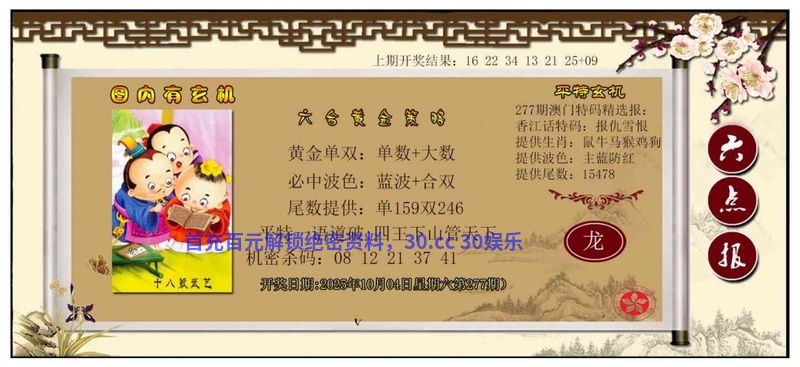 277期:平特连肖『羊龙虎猴鸡』开:4肖 |