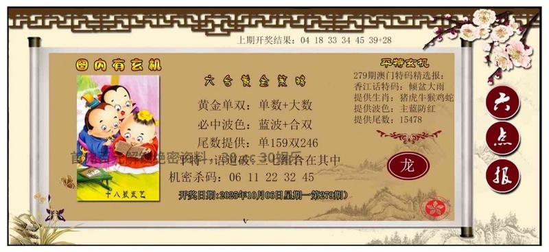 279期:平特连肖『猪猴牛鸡蛇』开:1肖 |